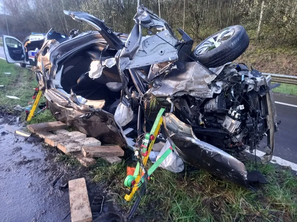 Une voiture seule était impliquée. Elle a terminé sa course sur le flanc.